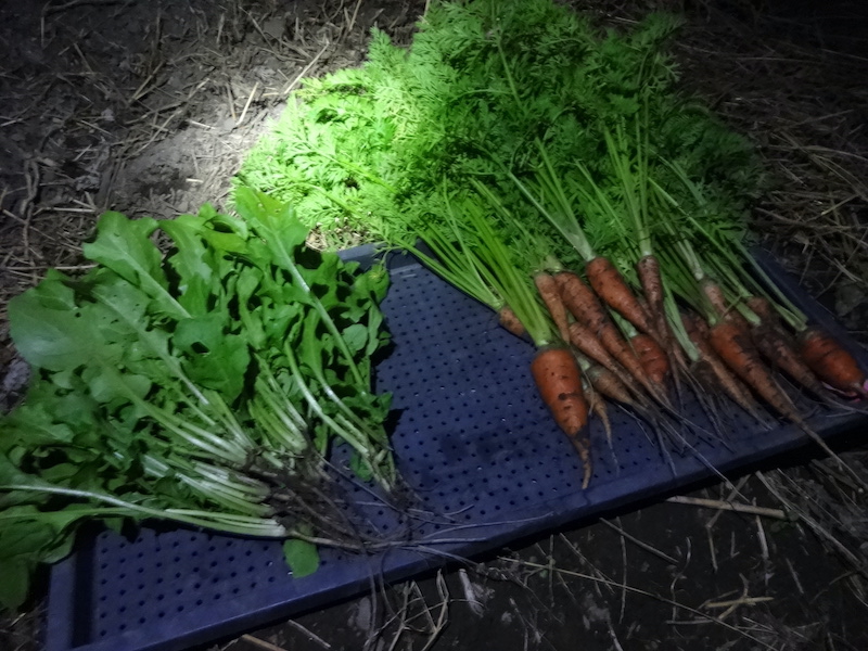 ラッキョウ、ニンジン、スナップ、ハーブ類、シュンギク、クジョウネギ、ホウレンソウ、ゴボウ、ルッコラ