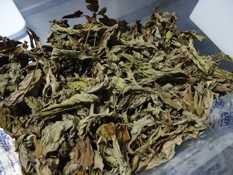 乾燥バジルにすると生(フレッシュ)とはまた違う香りとなり、その香りを言葉で表現するのは難しいのですが私が育てて天日乾燥させたバジルは何か「薬効を感じる香り」「漢方のような匂い」がします