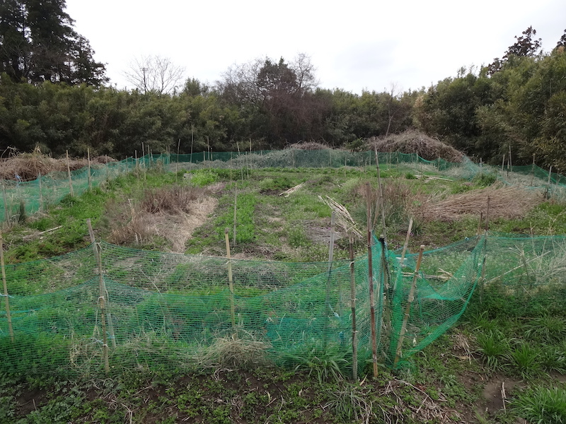 ニンジン、スナップ、ソラマメ、ルッコラ、コマツナ、ホウレンソウ、シュンギク、ラッキョウ(、ゴボウ)(、ハーブ類)(、クジョウネギ)